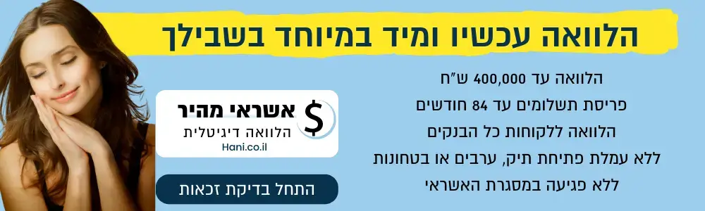 | ישראכרט | 200,000 ש"ח | 100 חודשים | החל מפריים + 3.5% |